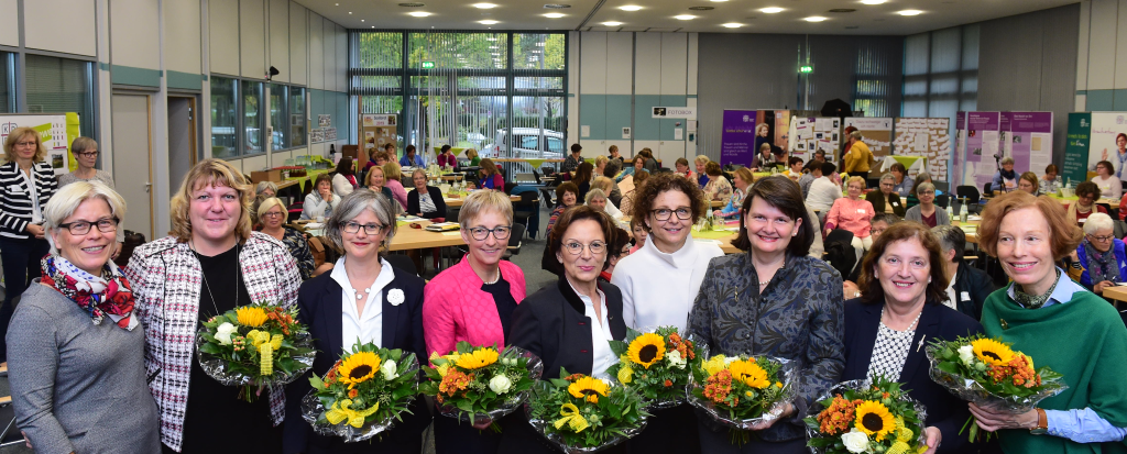 Einstimmig wählte die KDFB-Bundesdelegiertenversammlung Maria Flachsbarth ein drittes Mal zur Präsidentin des Frauenbundes. „Ich freue mich über diesen enormen Vertrauensbeweis und bin dafür sehr dankbar. Er bestärkt und ermutigt mich, weiterhin deutliche Akzente für eine gleichberechtigte Teilhabe von Frauen in Politik, Gesellschaft und Kirche zu setzen. Die Stärkung der Demokratie und die Bedeutung von Frauen in der Kirche stehen ebenfalls oben auf der Agenda des KDFB. Gemeinsam können wir inner- und außerhalb des Verbandes viel bewegen“, erklärte Flachsbarth nach der Wahl. Seit 2011 übt sie dieses Ehrenamt aus. Neben der Präsidentin wurden die bisherigen Vizepräsidentinnen Birgit Mock, Rose Schmidt und Sabine Slawik in den Bundesvorstand wiedergewählt. Neu dabei sind Monika Arzberger und Ulrike Stowasser. Sie folgen auf Christine Boehl und Marianne Bäumler, die als Vizepräsidentinnen nicht mehr zur Verfügung standen. Dorothee Sandherr-Klemp wird auch weiterhin als Geistliche Beirätin tätig sein. Die Vorsitzende des Landesverbandes Bayern, Emilia Müller, ist qua Amt Vizepräsidentin im KDFB-Bundesvorstand. Inhaltlich befassten sich die etwa hundert Teilnehmerinnen der Versammlung u.a. mit notwendigen Maßnahmen für eine klimagerechte Zukunft, mit Forderungen nach einer Geschlechterparität auf allen politischen Ebenen und mit dem synodalen Weg als Chance für die Kirche. Zuvor hatten sich die bundesweit tätigen Gremienvertreterinnen und KDFB-Einzelmitglieder in einer Studientagung mit der digitalen Transformation im Bereich von Arbeits- und Lebenswelt auseinandergesetzt. Der Katholische Deutsche Frauenbund (KDFB) ist ein unabhängiger Frauenverband mit bundesweit 180.000 Mitgliedern. Seit der Gründung 1903 setzt er sich für eine gleichberechtigte Teilhabe von Frauen in Politik, Gesellschaft und Kirche ein. Ute HückerReferentin für Presse- und ÖffentlichkeitsarbeitKatholischer Deutscher Frauenbund e.V. (KDFB)