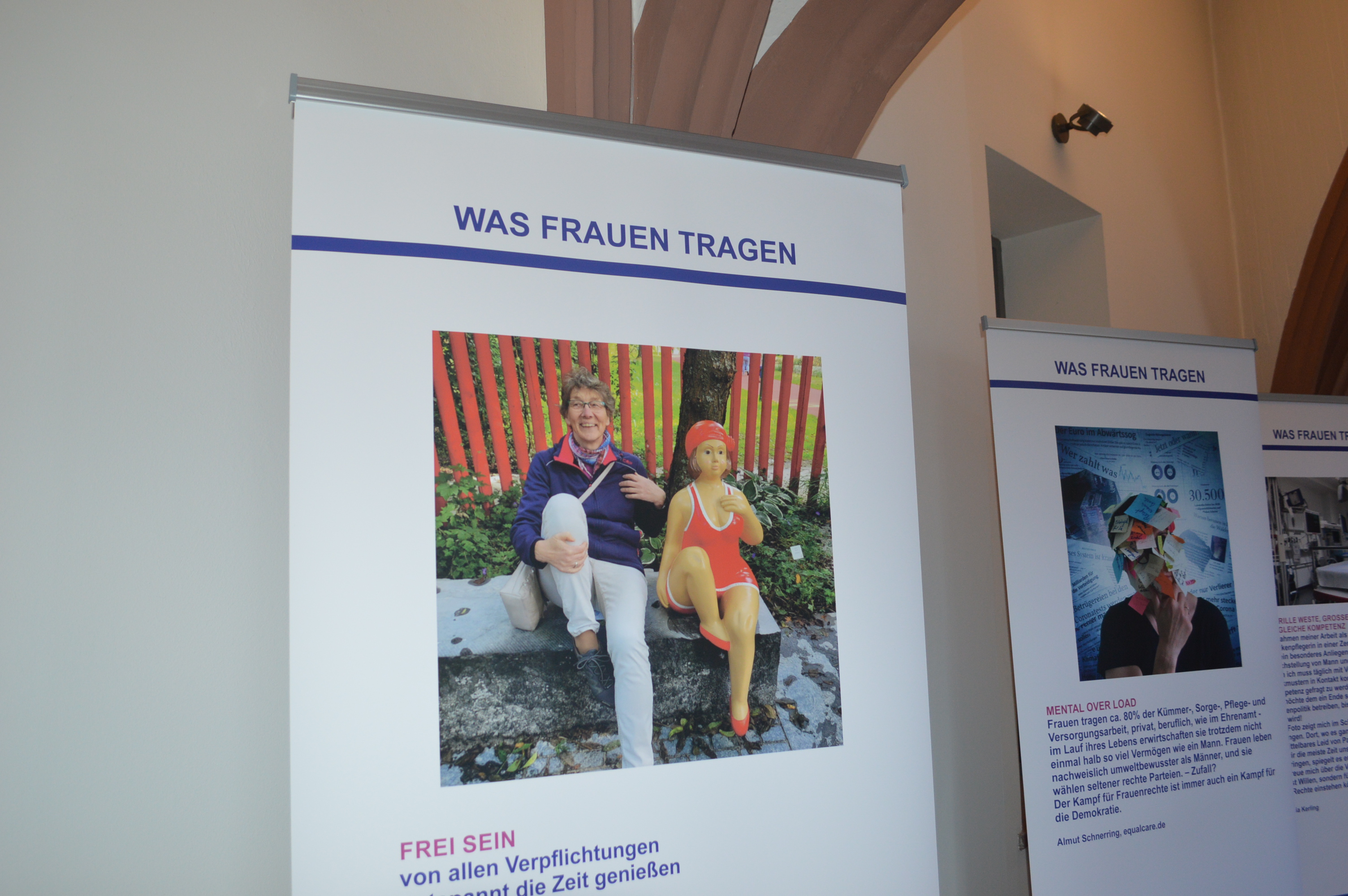 Die Ausstellung „WAS FRAUEN TRAGEN“ ist im Nachgang zu einem Fotowettbewerb 2024 entstanden. Frauen wurden hier aufgerufen Bilder aus ihrem Alltag einzusenden und ihre Gedanken zu diesen Fotos mitzuteilen.