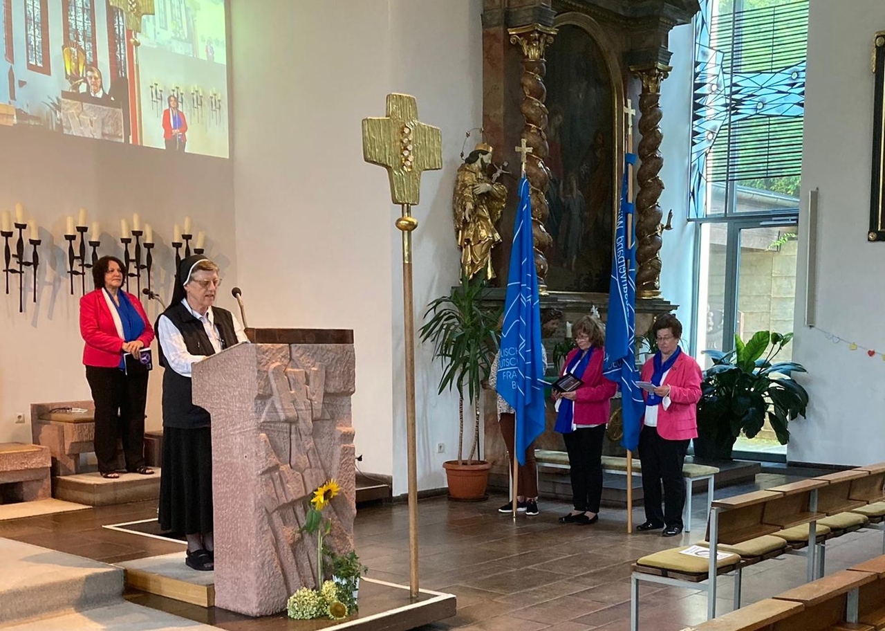Bei strahlendem Sonneschein feierte die Geistliche Beirätin Sr. Margit Herold des KDFB im Diözesanverband Würzburg e.V. mit den Anwesenden und den per Livestream zugeschalteten Interssierten einen Frauengottesdienst unter dem Motto "Frauen bewegen Kirche".