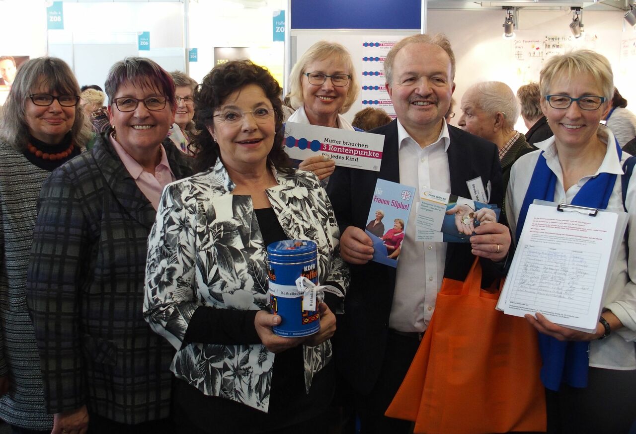 „Damit das Leben Freude macht und unbeschwert ist, brauchen Frauen im Alter 50plus auch finanzielle Sicherheit und eine gerechte Anerkennung ihrer Lebensleistung“, betonte Schießleder. Deshalb schließt sich der KDFB der Unterschriftenaktion des Deutschen Frauenrates für eine gerechte Mütterrente an. Viele hundert Frauen im Alter 50plus sind der gleichen Meinung und haben am Frauenbund-Stand bei der Fraueninitiative mitgemacht. Sie fordern mit ihrer Unterschrift eine Gleichbehandlung der Kindererziehungszeiten bei der Rente aller Mütter.