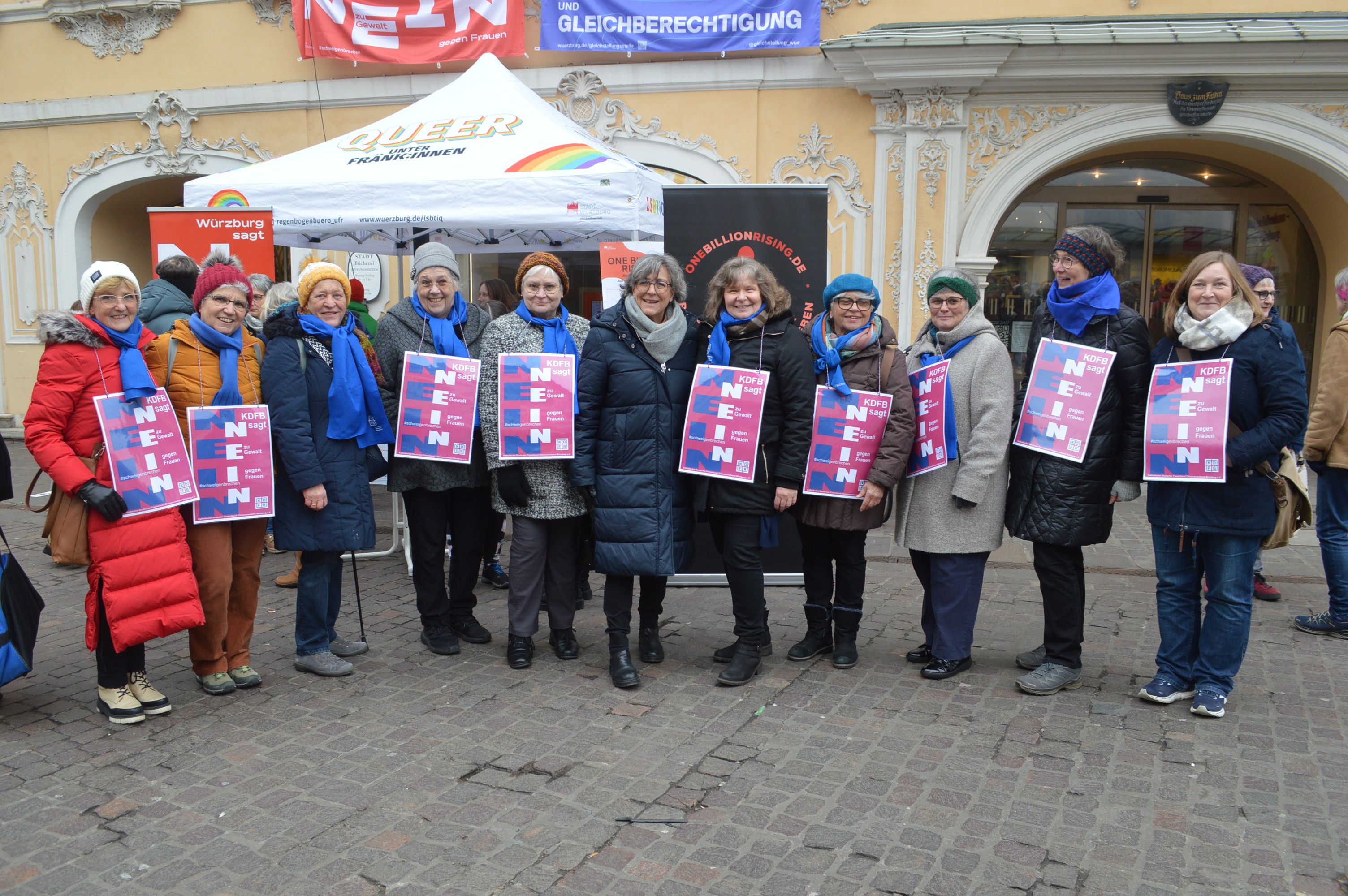 Diesmal waren auch die Frauen des KDFB wieder stark beim Tanzflashmob vor dem Falkenhaus in Würzburg vertreten und zeigten Solidarität und Stärke.