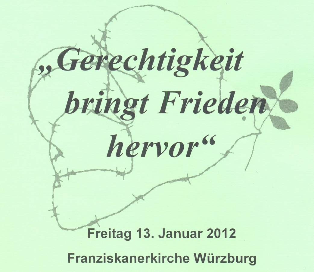 (Der Würzburger Gottesdienst findet in Kooperation von Pax Christi, Ackermann-Gemeinde, KDFB, Nagelkreuzinitiative, St. Egidio, AKW Oberzell und weiteren Friedensgruppen statt.)