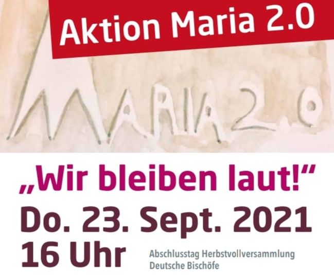 „Wir bleiben laut“ ist das Motto, mit dem Frauen und Männer der Maria 2.0-Initiativen aus ganz Deutschland dem Abschlusstag der Herbstvollversammlung der Deutschen Bischöfe ihren Stempel aufdrücken. Nach 2019 und 2020 demonstriert Maria 2.0 zum dritten Mal in Fulda für Gleichberechtigung, Gerechtigkeit und Glaubwürdigkeit in der katholischen Kirche. Los geht es um 16 Uhr am Bahnhof. Von dort bewegt sich der Zug mit Stationen durch die Stadt bis zur Abschlusskundgebung auf dem Eduard-Schick- Platz am Dom.